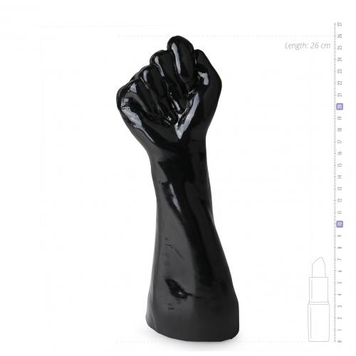 Geen partner in de buurt? Dan is dit het ideale moment om kennis te maken met deze imponerende vuist. Stevig gebald en fier rechtop, biedt deze glimmende zwarte PVC-vuist je 26 cm puur plezier. Geniet van de manier waarop het glimmende PVC langzaam, of net niet, in jou verdwijnt. Buigzaam genoeg om comfortabel aan te voelen, is deze vriend tegelijkertijd hard en stevig genoeg om je zowel anaal als vaginaal te verwennen.